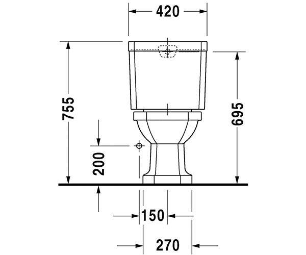 (无水箱), 加长型带虹吸喷头, 美式座便器, 305 mm/12" 坑距, 水平出水, 1.28加仑/冲 (4.8升) Duravit 设计 尺寸 360 x 665 mm 可变形式 © 2130010000