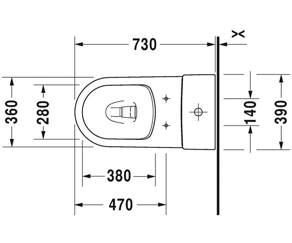 无缝冲水, 美式座便器, 加长型带虹吸喷头, 305 mm/12" 坑距, 水平出水, 适用于 SensoWash Starck 附加信息 适用于闪烁电子座便器座圈, Philippe Starck 设计 尺寸 360 x 730 mm 可变形式 © 1.32/0.92 加仑/冲 (5/3.5 升), 带双重冲洗角阀,顶部冲洗 2173010001