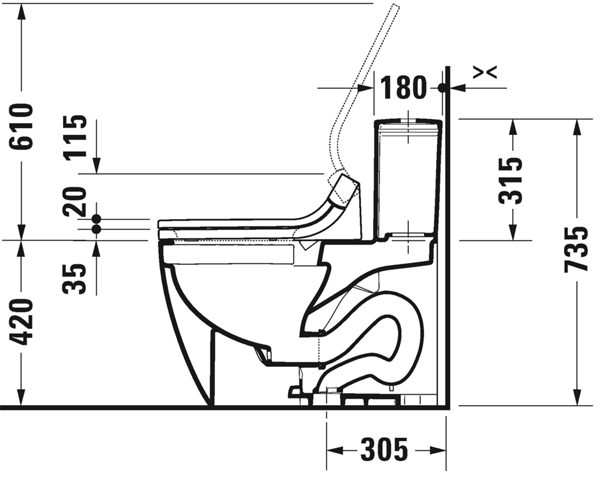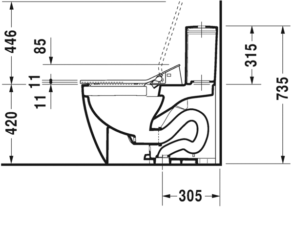 无缝冲水, 连接组件适用于带隐藏式连接件的 SensoWash®, 美式座便器, 加长型带虹吸喷头, 305 mm/12" 坑距, 仅能够与SensoWash®搭配使用, 垂直出水
