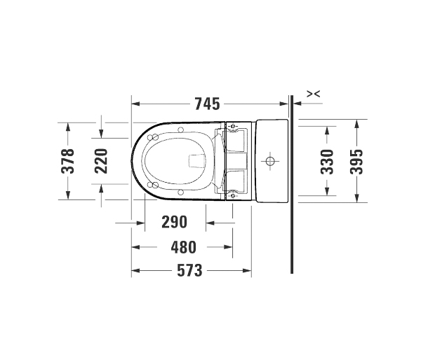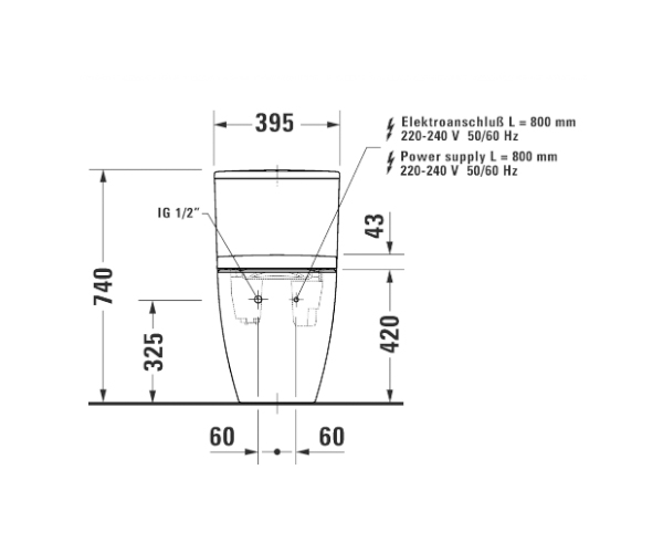 无缝冲水, 美式座便器, 加长型带虹吸喷头, 305 mm/12" 坑距, 仅适用于与SensoWash®f 搭配, 垂直出水