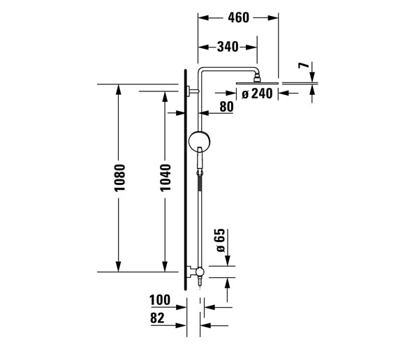 陶瓷混合系统, 连接件尺寸 DN15, 软管连接件 DN15, 流率 12,8 升/分钟 (3 bar), 花洒喷头角度可调调节, 高度可调节的手持花洒柄, 连接软管内有止回阀, 伸出长度350mm, 包括:包括淋浴软管1600mm,,手持花洒air Ø 120 mm,淋喷头 Ø 240 mm, 推荐在压力 3-5 bar下进行操作, 1200 mm