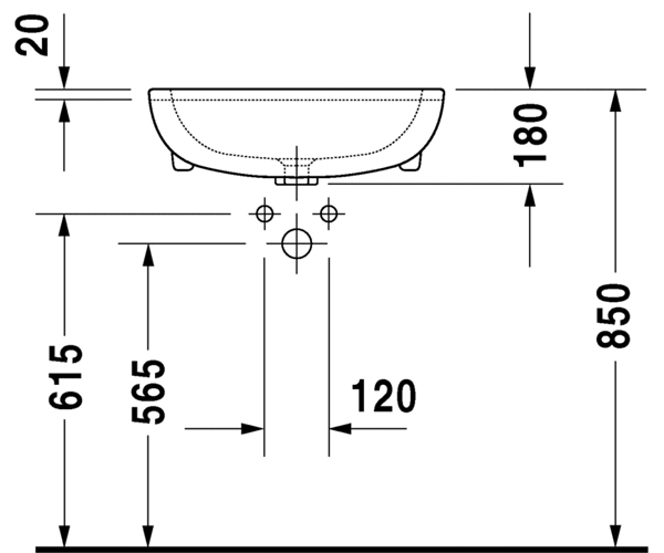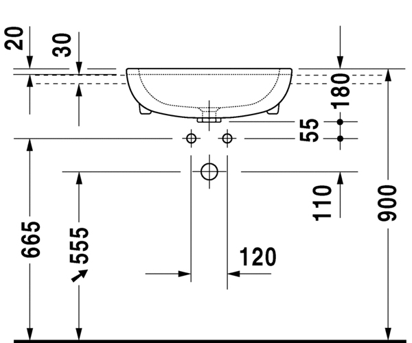 Vero 半嵌式脸盆0314550000/30有溢水口, 有安装龙头台, 包含安装木质台面配件, 55...