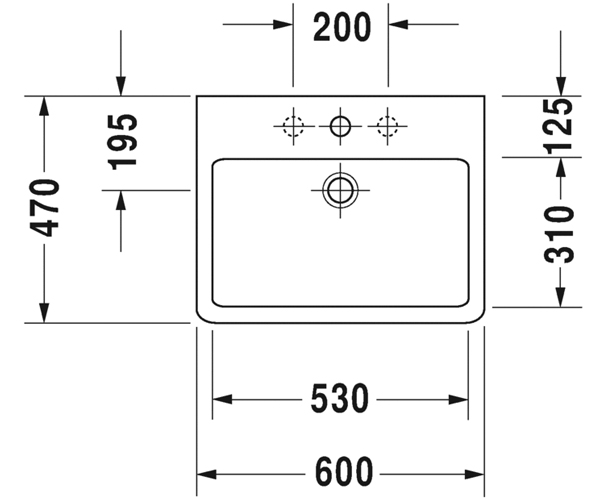 DuraStyle 嵌入式脸盆 0372600000台上式脸盆, 无溢水口, 无龙头安装台, 600 ...