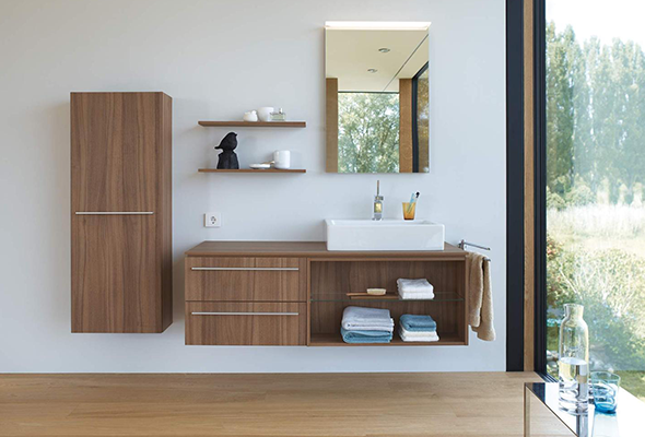即使在较小的客卫或酒店房间里,X-Large也能提供惊人的存储空间;台面和浴室柜拥有两种深度(500mm和480mm),因此可以选配更多的脸盆。 |